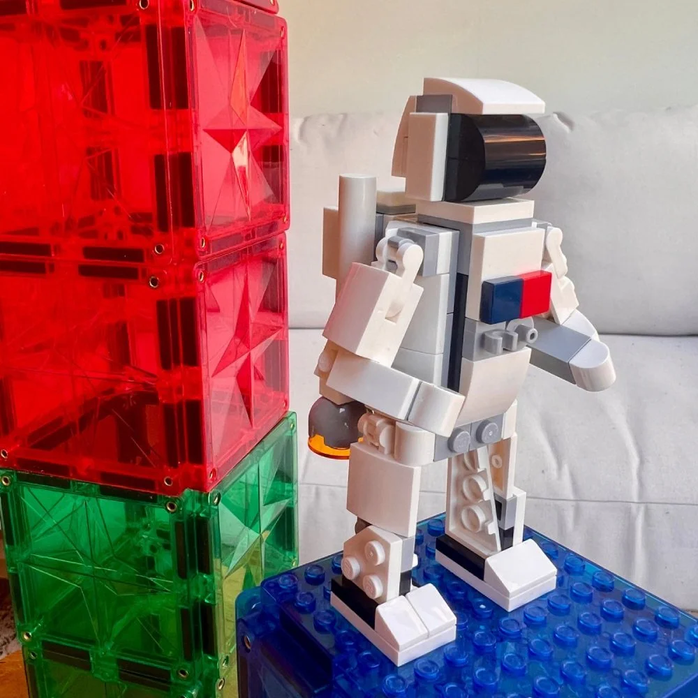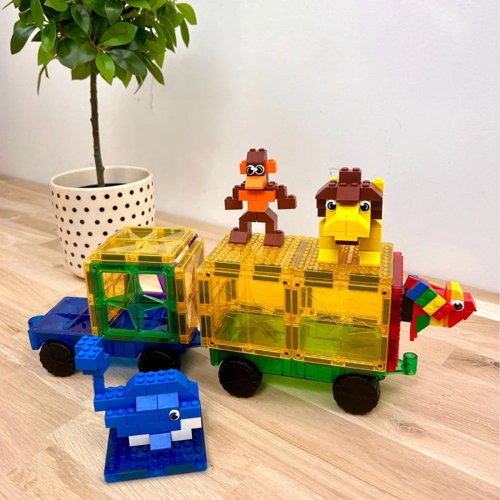 Wat deze set zo bijzonder maakt, is de slimme combinatie van magnetisme en bouwblokjes. De Brick tegels hebben noppen die perfect passen op bekende merken zoals LEGO®. Hierdoor kunnen kinderen hun magnetische bouwwerken uitbreiden met hun favoriete blokjes – en andersom! Een brug tussen twee werelden dus, waarmee de creatieve horizon verbreed wordt.