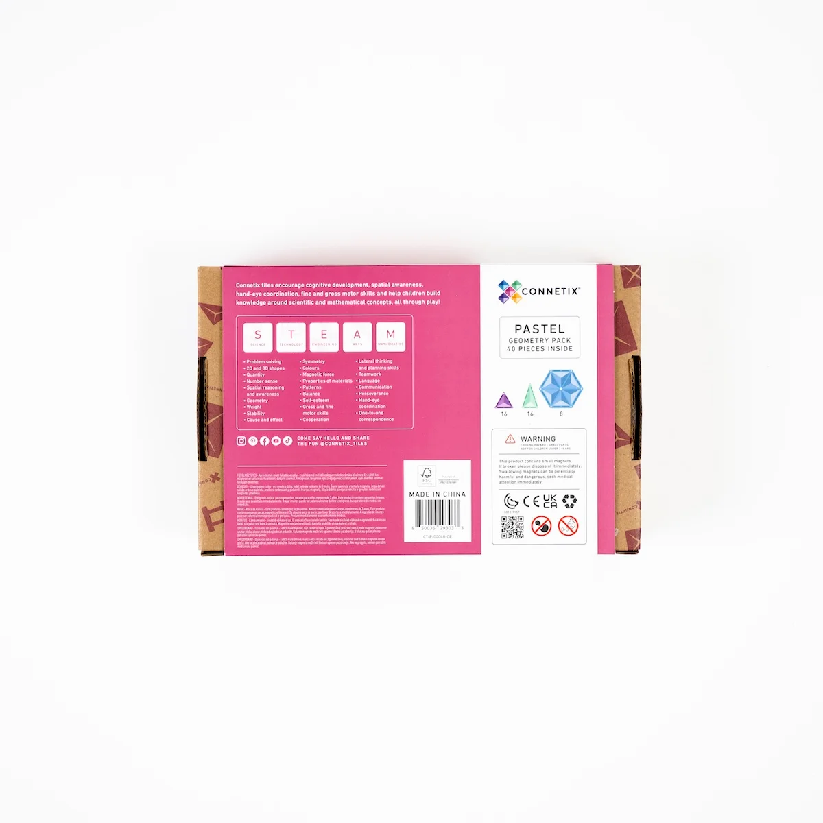 CONNETIX speelgoed: Met de CONNETIX Pastel Geometrie Pakket - 40 delig, geef je je kind niet alleen een speelgoed, maar ook een leerzame ervaring die hun ontwikkeling zal vormgeven op een manier die betoverend is. Maak van elke dag een nieuw avontuur met CONNETIX!