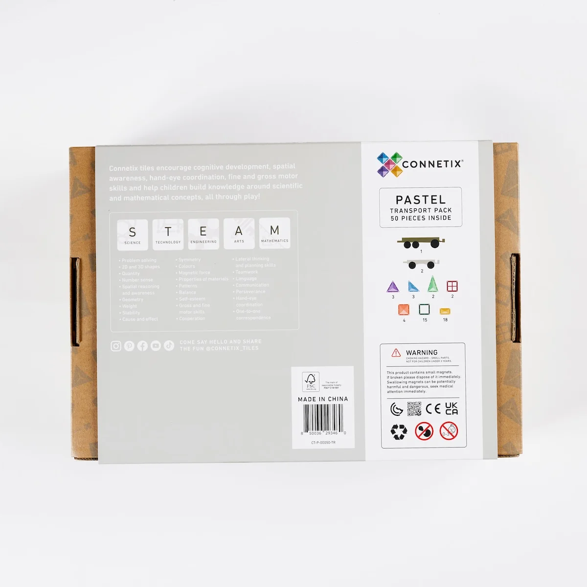 CONNETIX speelgoed: Met de CONNETIX Pastel Transport Pakket - 50 delig, geef je je kind niet alleen een speelgoed, maar ook een leerzame ervaring die hun ontwikkeling zal vormgeven op een manier die betoverend is. Maak van elke dag een nieuw avontuur met CONNETIX !