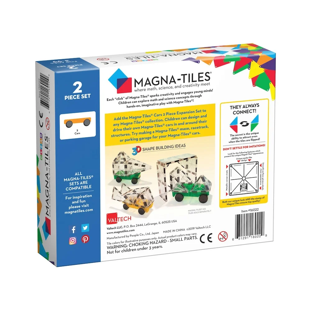 Voeg een nieuwe dimensie toe aan je Magna-Tiles avonturen met de Auto Uitbreidingsset in levendige tinten geel en groen. Deze 2-delige set is ontworpen om kinderen van alle leeftijden te boeien en inspireert tot oneindige creativiteit en spel. Elke set bevat een blauwe en een oranje racewagen, perfect passend bij de rest van je Magna-Tiles collectie. De auto's zijn uitgerust met sterke magneten die gemakkelijk aan andere Magna-Tiles stukken klikken, waardoor ze ideaal zijn voor het bouwen van spectaculaire racebanen, dynamische steden, of wat je kleintje zich ook maar kan inbeelden.