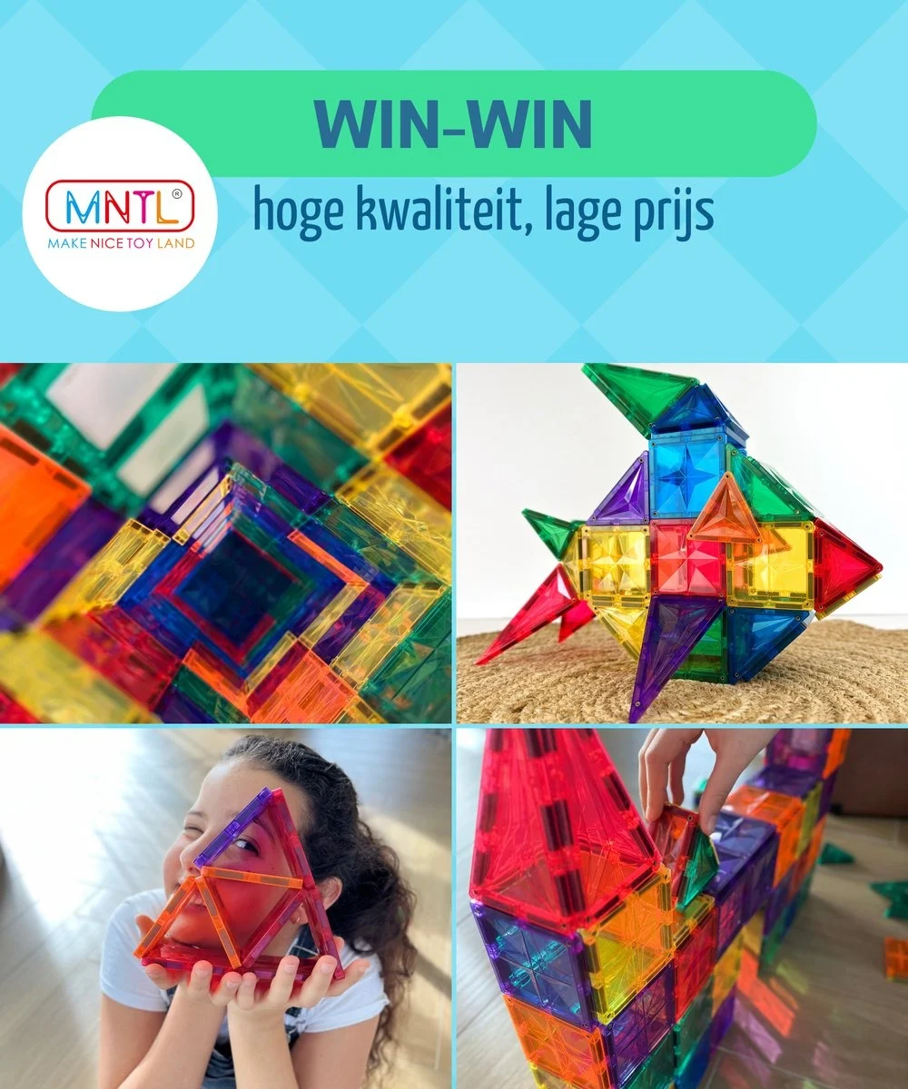 Ontdek eindeloos bouwplezier met dit super complete MNTL pakket! Deze kleurrijke en veelzijdige set is perfect om je kind op een speelse manier kennis te laten maken met vormen, kleuren en magnetisch bouwen. Of je nu samen met het gezin bouwt of kinderen zelfstandig laat ontdekken – dit pakket biedt alles voor urenlang creatief speelplezier.