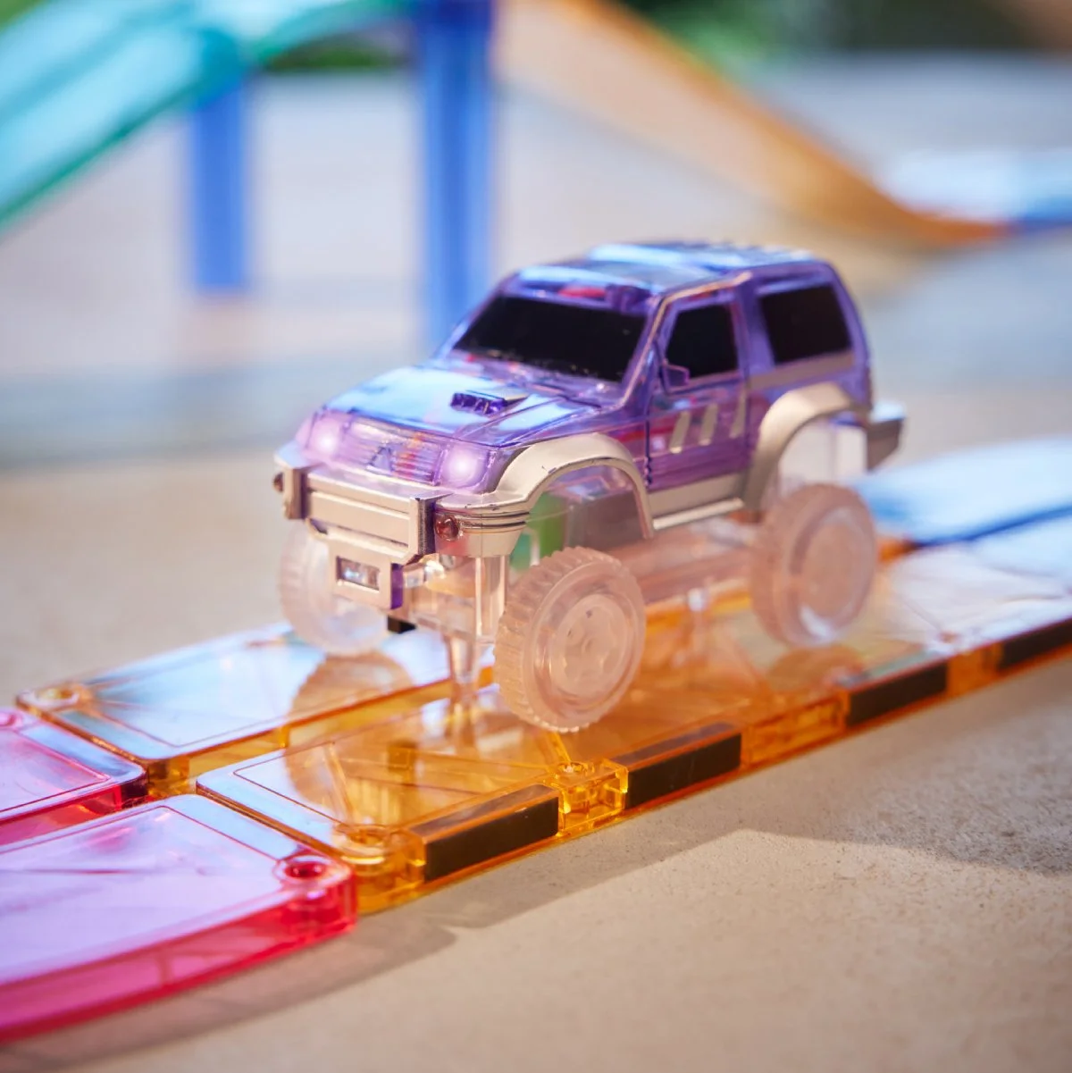 CobloCleverclixxMagna TilesMNTLLearn and grow toysPicasso TilesMagic MagneticMagnetische travel setsUitbreidings pakkettenBeschrijvingCleverclixx Race Track Car Pastel - Paars